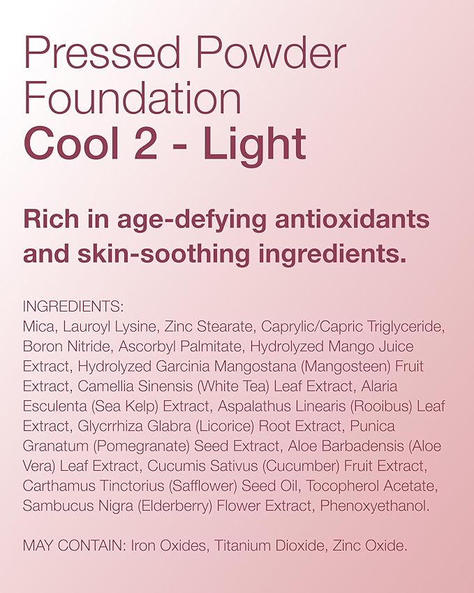 - Pressed Powder Foundation: Enhance your natural glow with this compact, triple-milled mineral foundation. The matte airbrush-like finish helps blur pores for a flawless, photo-ready look.