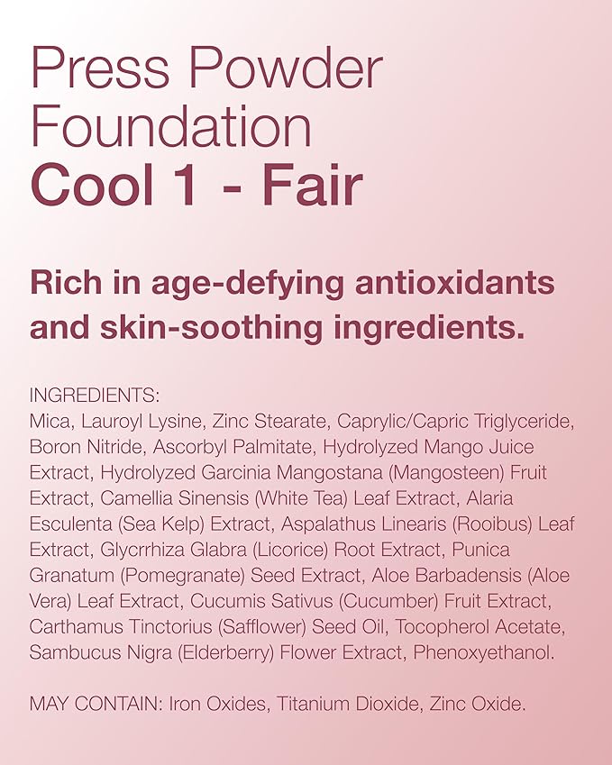 - Pressed Powder Foundation: Enhance your natural glow with this compact, triple-milled mineral foundation. The matte airbrush-like finish helps blur pores for a flawless, photo-ready look.