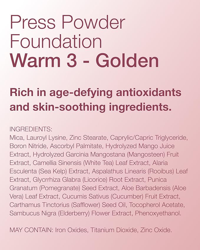 - Pressed Powder Foundation: Enhance your natural glow with this compact, triple-milled mineral foundation. The matte airbrush-like finish helps blur pores for a flawless, photo-ready look.