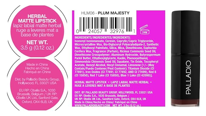 Palladio Herbal Matte Lipstick, Creamy and Full Coverage Long Lasting Matte Lipstick, Plum Majesty