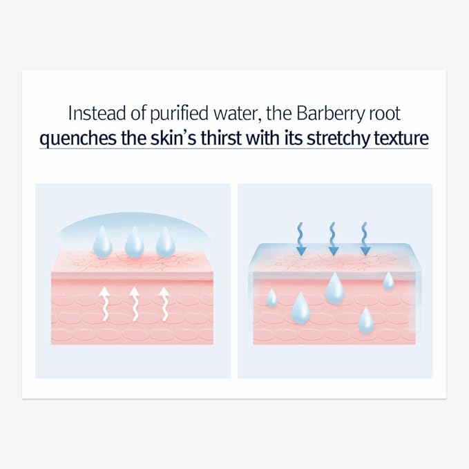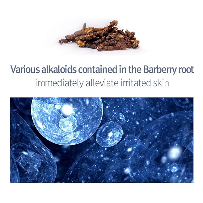 - A POWERFUL MOISTURE BARRIER, RAPIDLY SOOTHING - Instead of purified water, the stretch texture of Barburry root can replenish nutrition and moisture under the moisture barrier, between cells, maintaining the skin moisturized. Also, its various alkaloids immediately alleviated irritated skin.