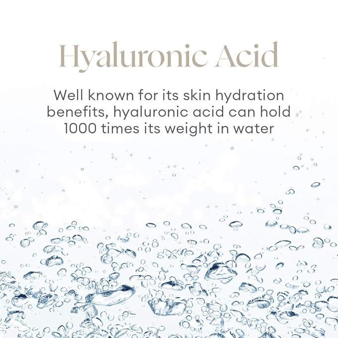 - Formulated with Hyaluronic Acid: Instantly hydrates skin, improving elasticity and reducing appearance of fine lines