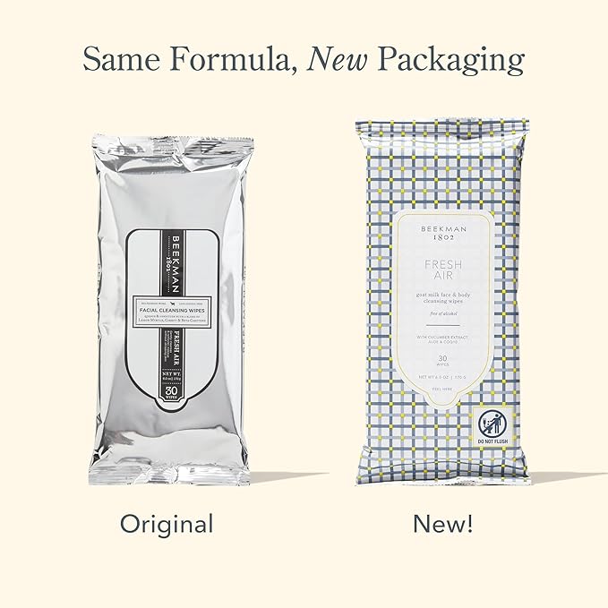 Beekman 1802 Face & Body Wipes, Fresh Air - Scented - 30 Count - Cleanses Dirt & Makeup - With Goat Milk, Aloe & Vitamin E - Alcohol Free, Biodegradable - Good for Sensitive Skin - Cruelty Free