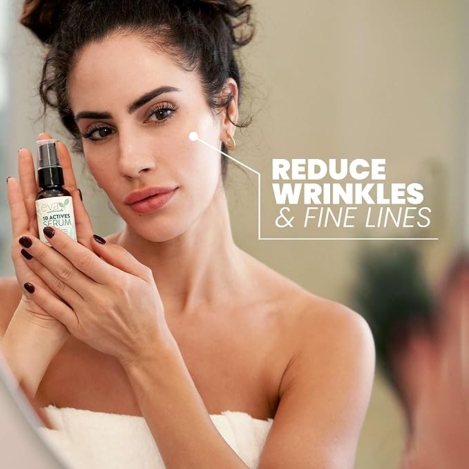 Eva Naturals 10 Actives Serum – Vitamin C, Niacinamide, Hyaluronic Acid, Turmeric, CoQ10 – Natural Anti Aging Face Serum for Dark Spots, Wrinkles, Acne, Skin Care & Facial Spot Remover
