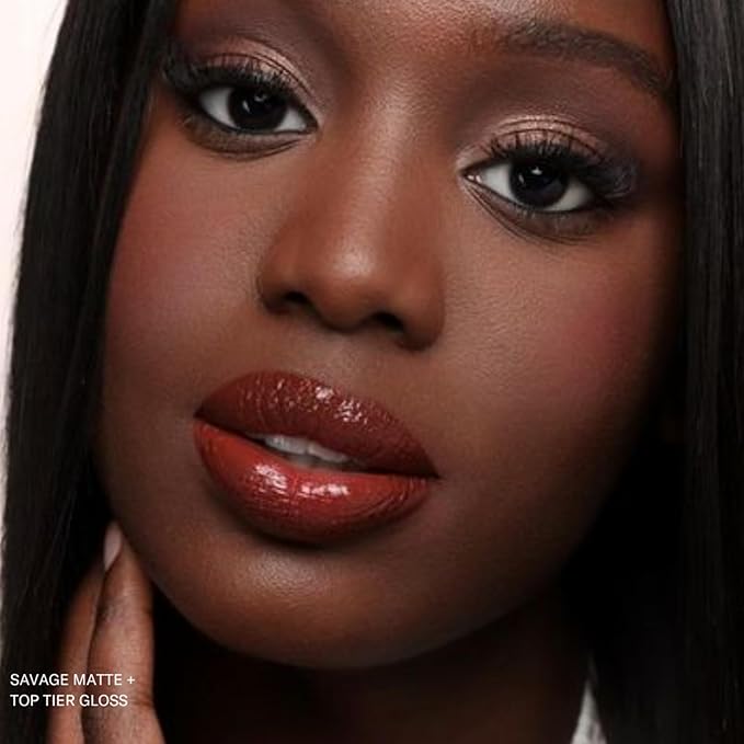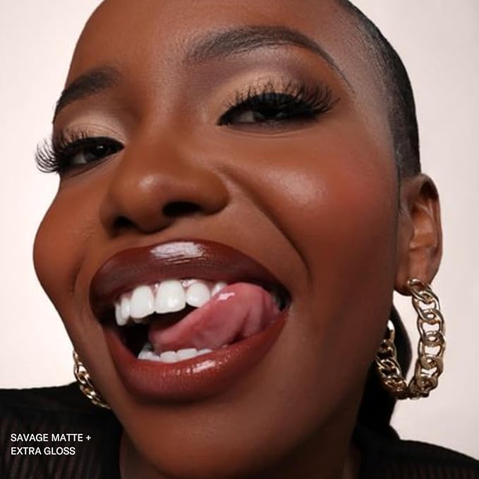 - Savage - We have a matte to match all your moods. This Chocolate Red-Brown non-stop liquid matte goes on like a gloss, dries down matte, and lasts all day with an 8-12 hour wear. Infused with Jojoba oil and Vitamin E.