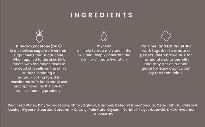 - HAPPY INGREDIENTS: Among a rare few, we proudly stand as a company dedicated to providing a spray tan solution crafted solely from safely sourced, vegan-friendly ingredients, devoid of Erythrulose and parabens. Thus providing a loving tan and happy spray tan machine!