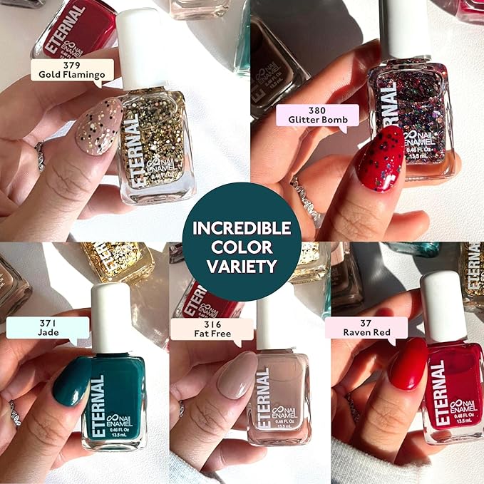 Eternal Glitter Nail Polish Set for Women (CHEERS) - Gold Nail Polish Set for Girls | Long Lasting & Quick Dry Nail Polish Kit for Home DIY Manicure & Pedicure | Made in USA, 13.5mL (Set of 5)