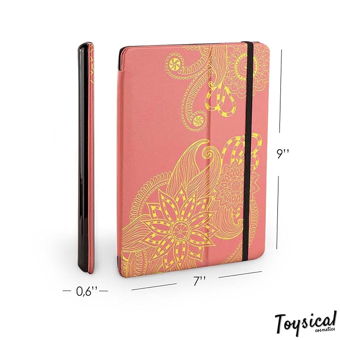 - Innovative Tablet Design: Strike out with the cool tablet design casing, mimicking a real tablet case. You can actually fold the top of the case, utilizing the mirror while applying your makeup. The coral pink and gold pattern of this make up kit for women full kit is sure to attract everyone's attention.