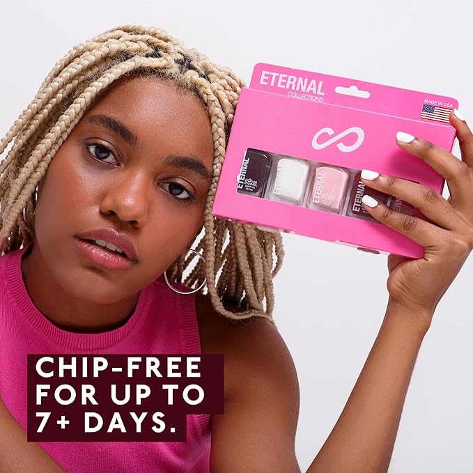 Eternal Red Nail Polish Set for Women (ROSE ALL DAY) - Pink Nail Polish Set for Girls - Long Lasting & Quick White Nail Polish for Home DIY Manicure & Pedicure - Made in USA, 13.5mL (Set of 5)