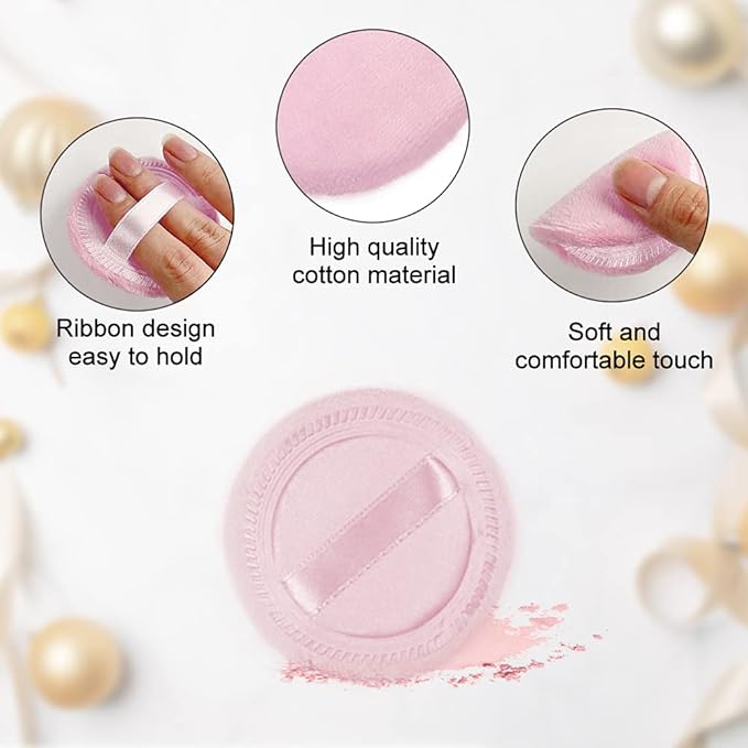 10pcs Powder Puff Cotton Cosmetic Face Makeup Powder Puffs Pads with Ribbon for Loose and Foundation 2.36 inch. (Pink)