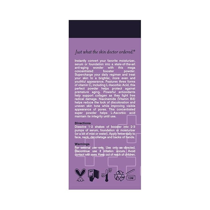 - WHAT IT DOES: Enhance your daily routine with this treatment for a brighter, more even, and youthful complexion. Featuring three forms of Vitamin C, including L-Ascorbic Acid, this powder helps protect against premature aging. Its powerful antioxidants support collagen integrity and neutralize UV-induced free radical damage.