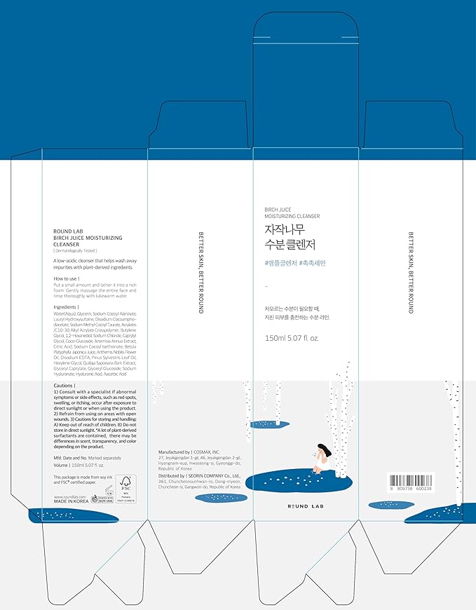 - [BETTER TOGETHER] Pair with ROUND LAB Birch Juice Moisturizing Cream after cleansing to lock in hydration and enhance your skin’s moisture barrier. The perfect duo for a deeply hydrated, refreshed complexion