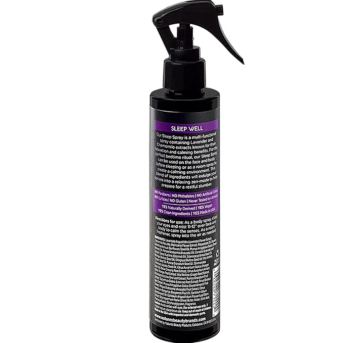 - Multipurpose Sleep Spray: Versatile face, body, pillow, and room spray; designed to promote relaxation and a restful night’s sleep