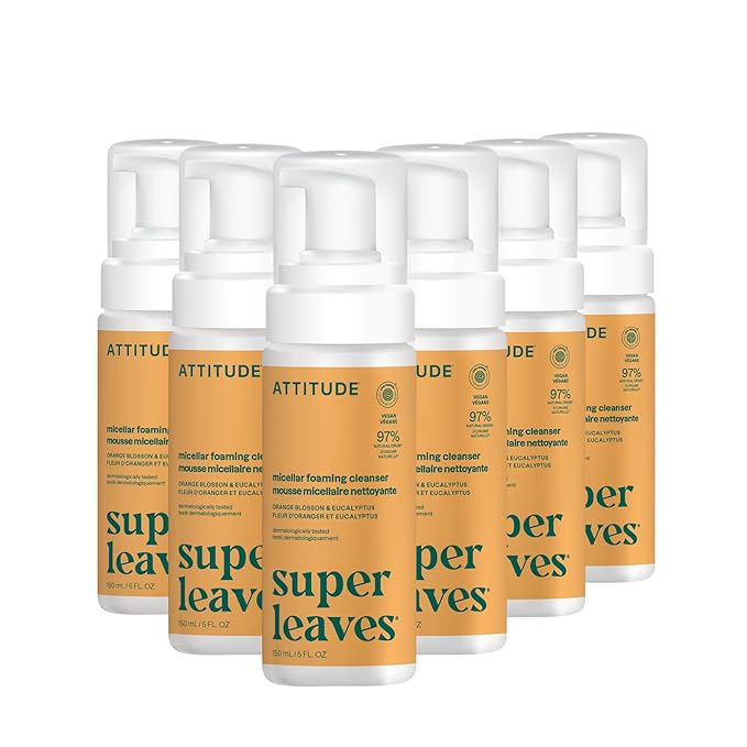 ATTITUDE Micellar Foaming Facial Cleanser, EWG Verified, Dermatologically Tested, Plant and Mineral-Based, Vegan, Orange Blossom & Eucalyptus Scent, 5 Fl Oz (Pack of 6)