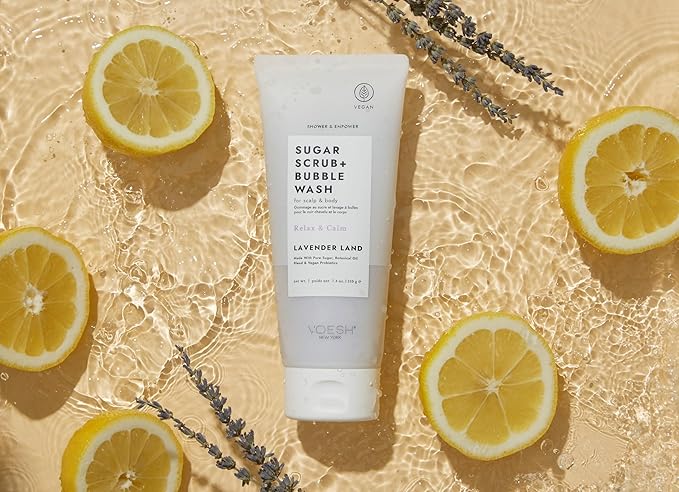 VOESH Sugar Scrub + Bubble Wash, Exfoliating Body Scrub & Body Wash, Lavender Land, Scalp Scrub, Scalp Care, Shower Sugar Scrub, Vegan Body Care