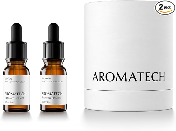 AromaTech Santal & The Hotel Set | Gift Set of Aroma Diffuser Essential Oils Blend of Santal Cardamom, Papyrus, Musk | The Hotel Peach, Red Rose, Pine - 10 Milliliter