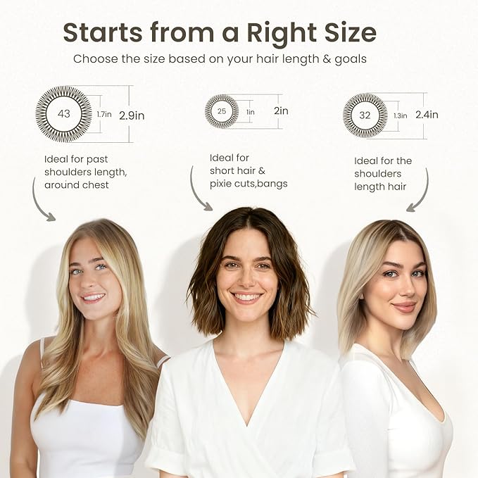 - 2 Inch Round Brush for Short Hair:With an overall diameter of 2 inches (including bristles) and 1 inch barrel diameter, this round brush is ideal for women with chin-length hair. Its compact size makes it especially easy to style detailed areas, such as bangs and layers. Perfect for creating voluminous blowouts and soft, natural tight curls