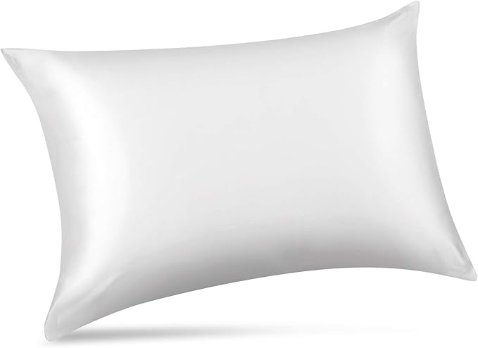 ALASKA BEAR Silk Pillowcase for Hair and Skin, 100% Mulberry Silk Pillow Cases Standard Size for Bliss Sleep with Random Color Scrunchy Gift Set Better Than Poly Satin, Zipper Closure, 1pc, Cool White
