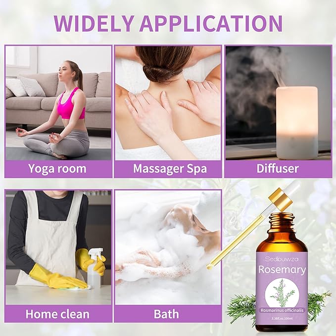 - ☑【100% Pure Natural RosemaryOil】- Sedbuwza rosemary essential oil is extracted by steam distillation from the leaves of rosemary, without any additives, unfiltered. Dilute with a carrier oil before applying to the skin. Suitable for beginners or essential oil lovers.