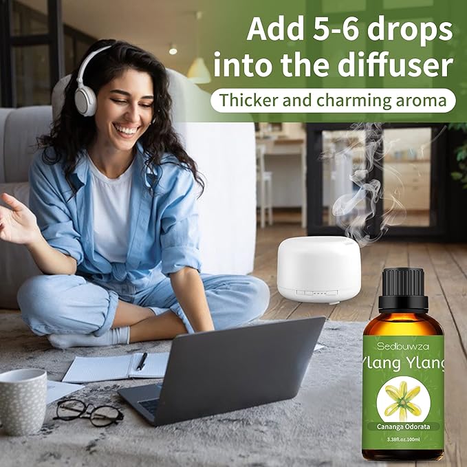- ☑【100% Pure Natural Ylang Ylang Oil】- Sedbuwza Ylang Ylang Essential Oil is extracted by steam distillation from the flower of Ylang. No additives, unfiltered. Dilute with a carrier oil before applying to the skin.