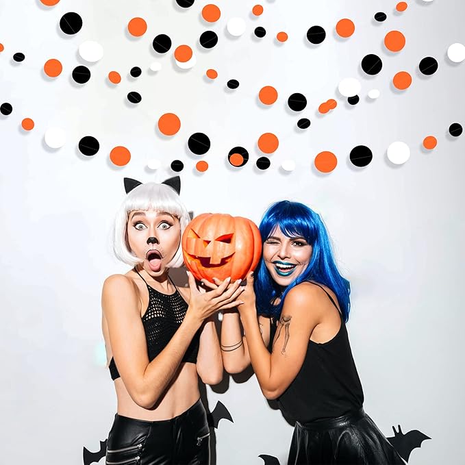 46Ft Orange Black Circle Dot Garland Black Orange and White Polka Dot Hanging Paper Streamer for Birthday Wedding Bridal Shower Baby Shower Fall Autumn Halloween Thanksgiving Party Decoration Supplies