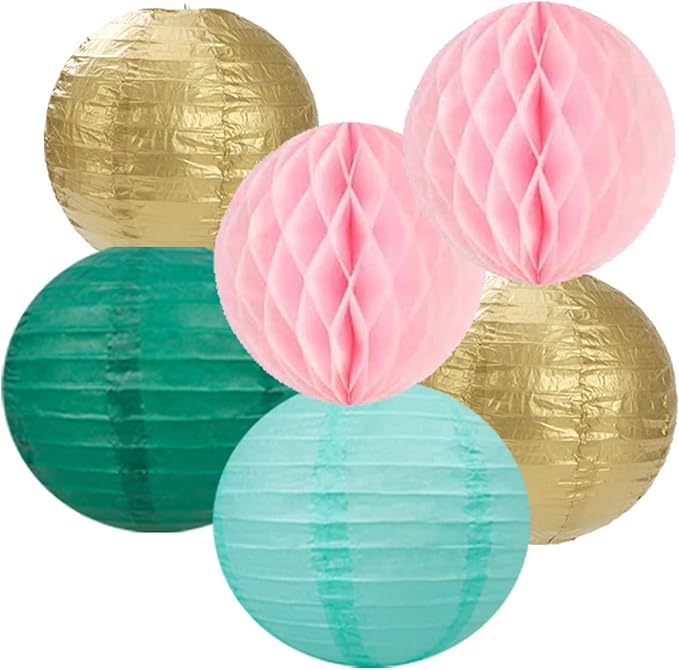 - 【Sage Green Pink Gold Party Kits】The party decorations kits include 6pcs tissue paper flowers: 3pcs 10" and 3pcs 12" in three color, 4pcs 8inch paper honeycom ball,2pcs 8inch paper lantern, 2pcs 12inch paper fan.