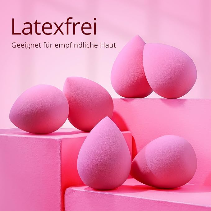 BEAKEY Super Soft Makeup Sponge Set of 6, Makeup Sponges for Foundation, Liquid, Cream and Powder, Pink Beauty Sponge for Blending, 0 Latex Blender