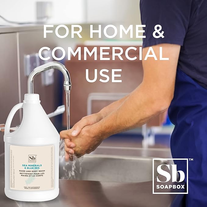 Soapbox Liquid Hand Soap & Body Wash, Sea Minerals & Blue Iris - Gentle, Moisturizing Hand & Body Cleanser, Vegan, Cruelty Free Hand Soap Refill for Bathroom, Kitchen, Professional Use - Gallon Size