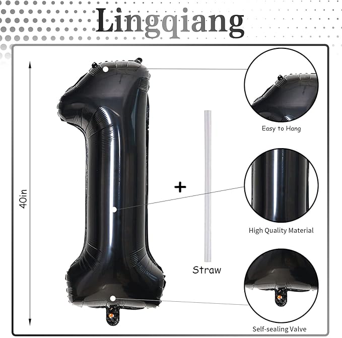 - 🎉 Black Number 1 Balloon 🎉 - You will get 1pc 40 inch mylar foil number 1 balloon and 1pc straw. Perfect for 1st 10th 12th 13th 15th 16th 17th 18th 21st birthday or anniversary party decorations supplies.