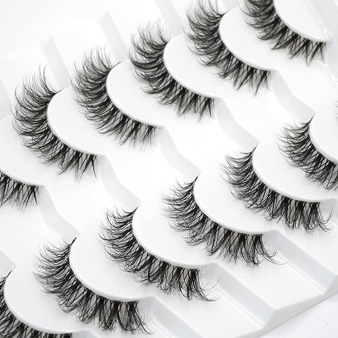 3D Clear Band False EyeLashes Natural Look Cat Eye Wispy Fake lashes Short Supernatural Cross Soft Reusable Lashes 7 Pairs-Happy Heartbeat(No.218)