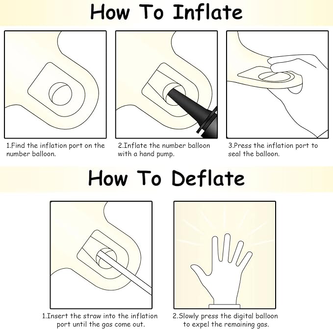 - 🎉 Repeated Use 🎉 - The ivory number balloons set contains a straw that can be used to deflate the foil balloon, simply insert the straw into the valve and press gently until the gas is completely expelled. After use, it can be folded and stored for reuse.