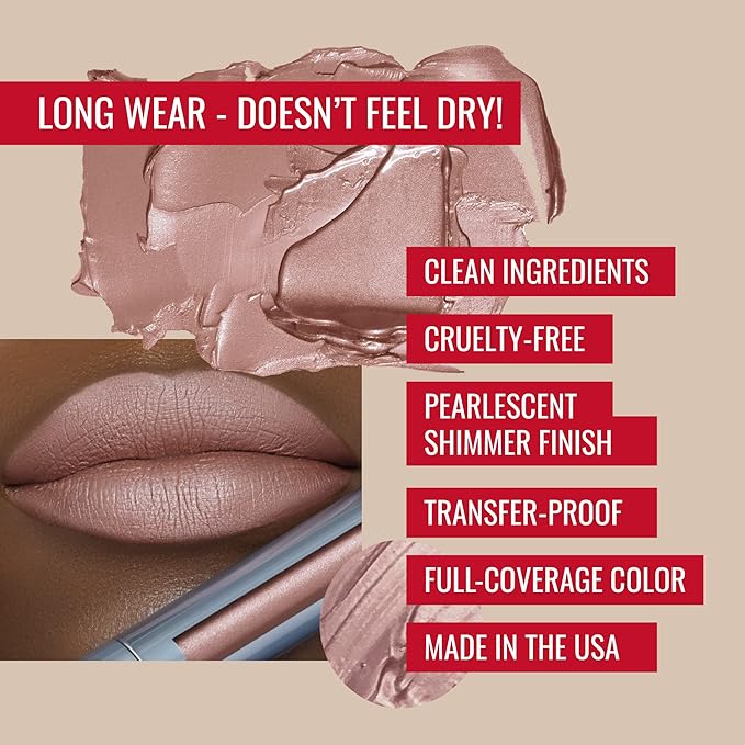 - LONG WEAR LIQUID LIPSTICK: Our Pearl Glam Liquid Lipstick is a transfer-proof, long-lasting liquid lipstick infused with luminous pearlescent pigments. The moisturizing formula will stay put and uses nourishing ingredients and antioxidants to keep lips hydrated.