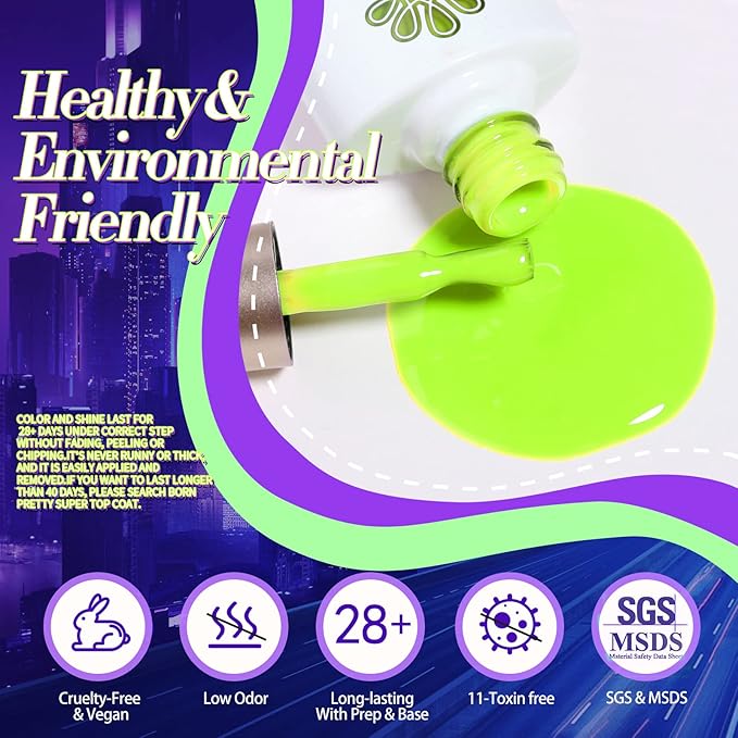 - Healthy Gel Polish :Healthy ingredient with low odor! No harsh ingredients or adhesives that lead to damaged nails. Only used for nail and Non-direct contact with the skin. Wash immediately if contact occurs. Keep the products away from the pregnant and the kids.