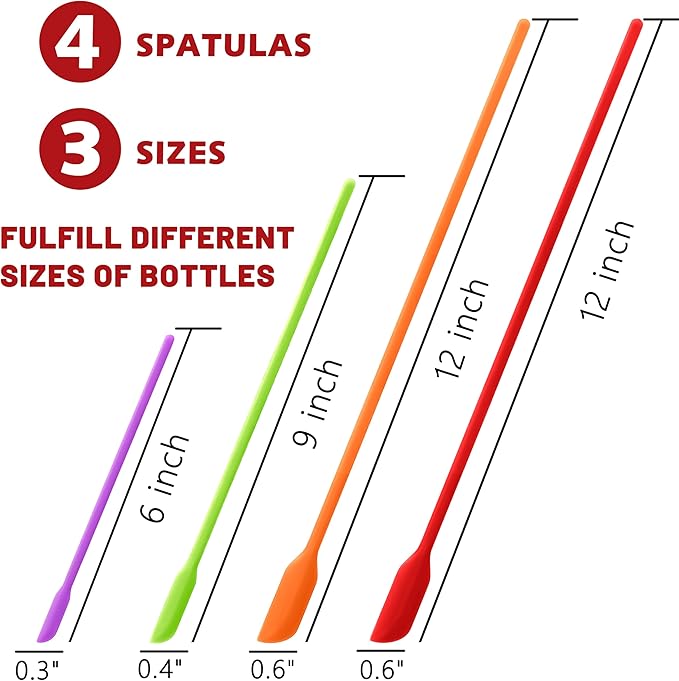 - FLEXIBLE SPATULA - Anaeat silicone spatulas designed with narrow soft heads and long body that can reach many bottles and jars to get every drop out of your container. UPGRADED PROPER BALANCE BETWEEN FLEXIBLE AND STURDY