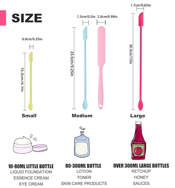 - 【Endless Possibility】 The makeup spatulas reusable can use with facial creams, serums, foundations, moisturizers, tanning products, make-up, hair treatments, and more.