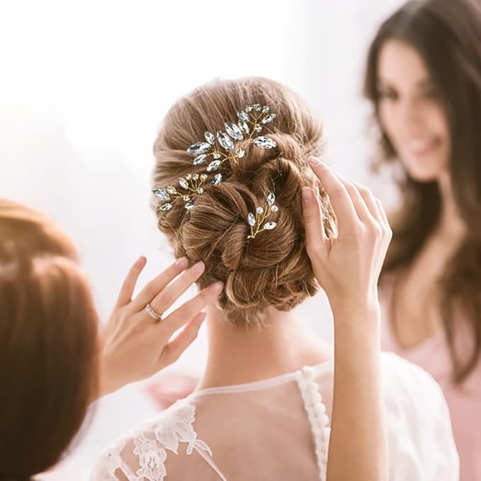 6 Pieces Bride Hair Pins Rhinestones Gold Hair Accessories for Women Crystal Wedding Hair Piece for Bride Women Girls Bridesmaids (Gold)
