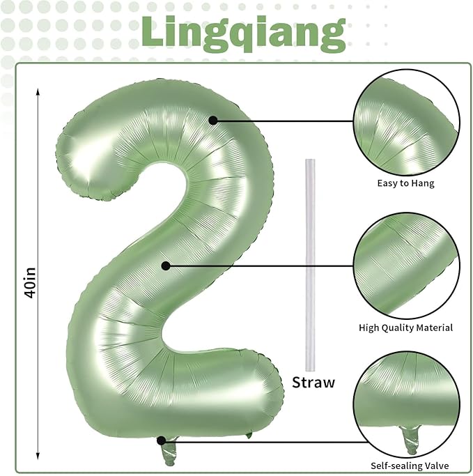 - 🎉 Sage Green Number 2 Balloon 🎉 - You will get 1pc 40 inch mylar foil number 1 balloon and 1pc straw. Perfect for 2nd 12th 20th 21st 25th birthday or anniversary party decorations supplies.