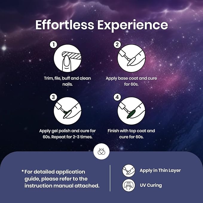 - 【Long-Lasting Shine】Beetles gel nail polish set lasts for 28+ days with perfect shine under proper application - With base gel top coat under the full application process and needs to be cured under LED/UV light for 60-120 seconds.
