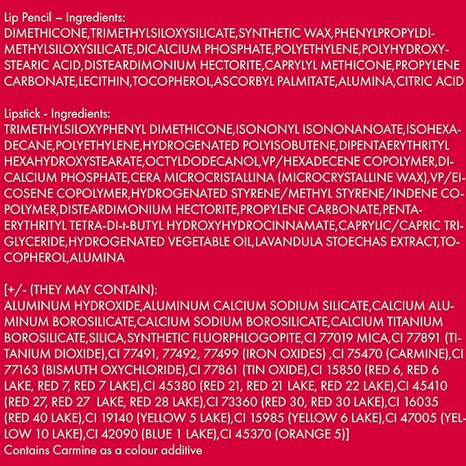 - Lipstick and Lip Pencil Duo: Enjoy the 2-in-1 convenience of both a lip contouring pencil and a shiny lipstick in one product.