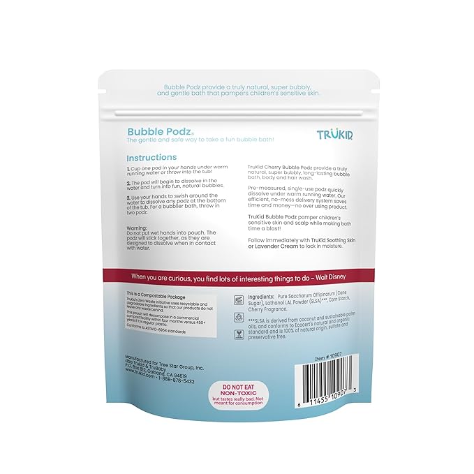 - Bubbly Bath Time They’ll Love - Make bath time a favorite part of the day with TruKid Bubble Podz foamy bubble bath for kids that’s easy to use and gentle on skin. Just one pod fills the tub with lasting bath bubbles for kids, turning routine washes into joyful moments.