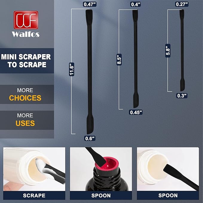 - 【DOUBLE-ENDED DESIGN & MULTIPURPOSE】– One side is mini spoon and the other side is silicone scraper. Spatulas have widely usages. Suitable for peanut butter and ketchup, Jars, Honey, Cosmetics, Makeup, Hand Lotion, Pain Cream, Body Lotion, Foundation, Hair Products, Shampoo, Conditioner, Lip gloss, Nail Polish, and so on.