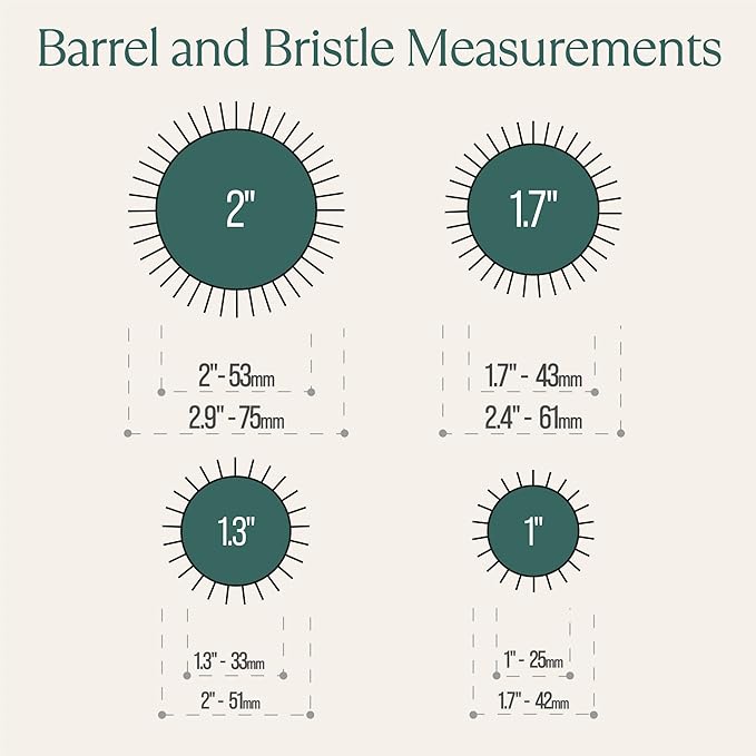 - Suitable for Every Occasion; Our round brush for blow drying set comes in four different barrel sizes (1”, 1.3”, 1.7”, and 2”) with included bag for travel. The small 1” brush is perfect for giving maximum volume and ultra-detailed hairstyle, while the 1.3” brush is perfectly designed to add volume and just a bit of curl. Our medium-sized 1.7” brush adds just the right amount of volume that’s big enough to flatter without looking overdone and the 2” brush is perfect for giving your hair big, loose waves.