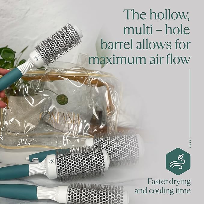 - Make Styling a Breeze; This brush set is perfectly designed to suit all your styling needs! Whether you have fine, thick, curly, straight, long or short hair you'll be surprised at how effortless our hair brushes work to give your hair a gorgeous style. Features an innovative multi-hole barrel and ion-infused design for an instant hair boost, speeds up drying time, and prevents damage so you can achieve that naturally gorgeous, shiny, and voluminous looking hair! This is the perfect traveling essentials for women.