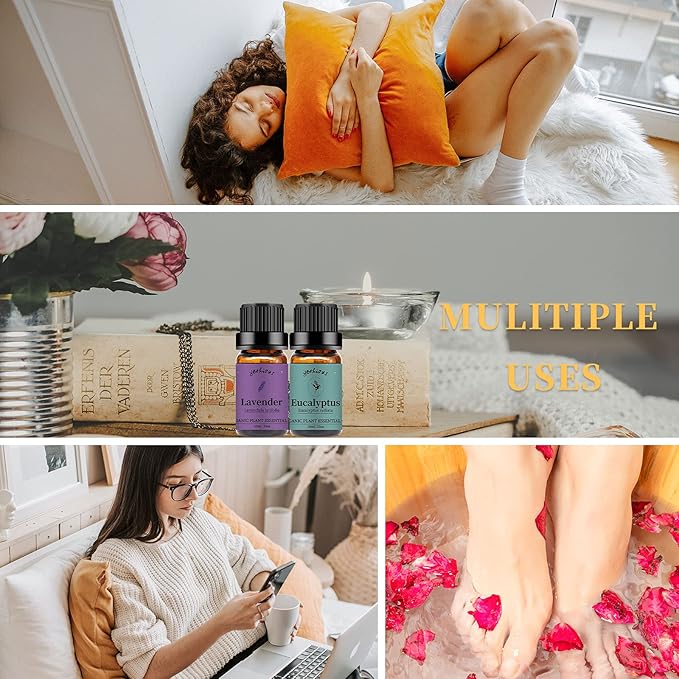 - Package Included: 1 x lavender oil, 1 x eucalyptus oil. Our product has beautiful package. As present to friends and relatives.