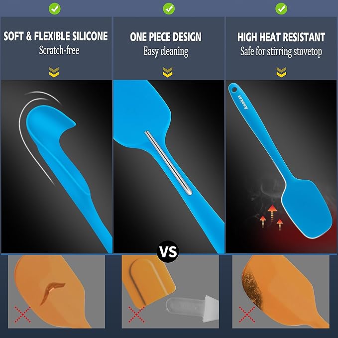 - PERFECT FOR ALL NON-STICK SURFACES COOKWARE - Anaeat spatulas have Sturdy Silicone Protective Cover which is non-stick itself and won't scratch the non-stick coating in your expensive Pots and Pans. Hygienic solid silicone design is Perfect for cooking, baking, mixing, flipping and so on.