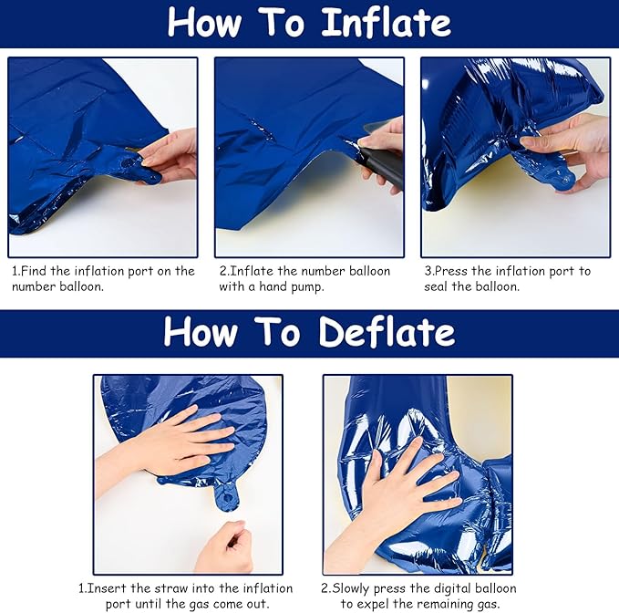 - 🎉 Repeated Use 🎉 - The navy blue number 7 balloons set contains a straw that can be used to deflate the foil balloon, simply insert the straw into the valve and press gently until the gas is completely expelled. After use, it can be folded and stored for reuse.
