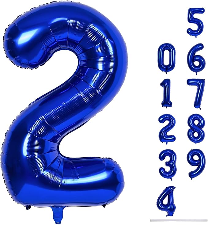- 🎉 Easy to Inflate 🎉 - The big navy blue number 2 foil balloons have self-sealing valve does not need to be knotted for easy inflation and deflation. It can be inflated with air or helium. When filled with helium, the balloons can float in the air; after filling, press the valve of the digital balloon to seal it. It can be reused. Do not throw away after use!
