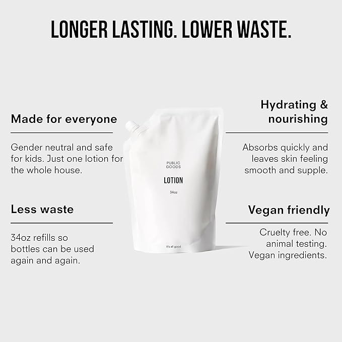 Public Goods Body & Hand Lotion for Women & Men | Natural Moisturizing Daily Lotion for Dry & Itchy Skin | Paraben & Sulfate Free | Made with Organic Essential Oils | Made in Canada | 34 Fl Oz Refill