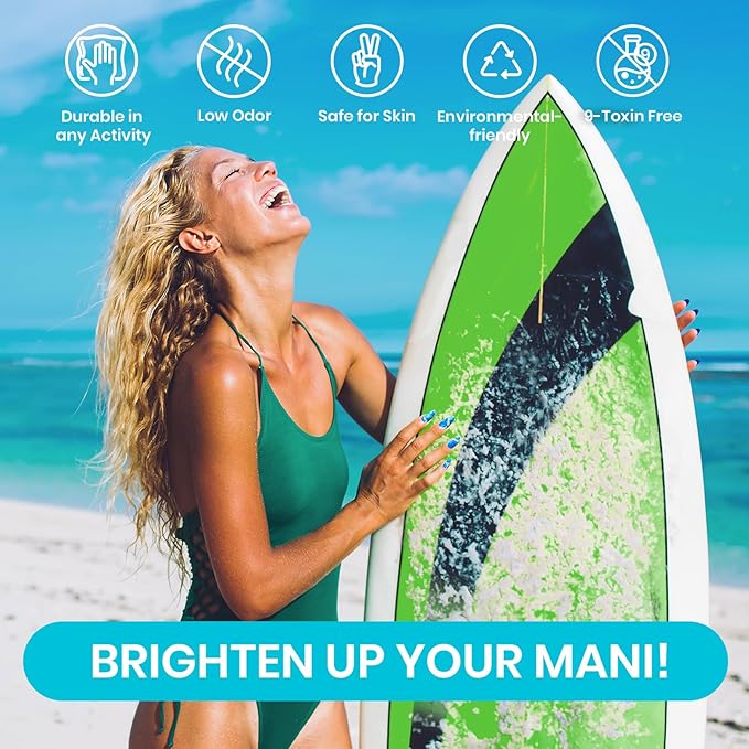- 【Amazing Fashion Colors】Like dancing waves and surging seas, this design captures a surfer gliding through blue swells, challenging nature's limits. Beetles presents you with not only colors, but also an adventure that inspires courage deep in the soul, letting creativity run wild like waves and writing your own summer miracle! Like nature’s palette, every color is part of the colorful wonder of summer. (6pcs 7.5ML/ 0.25fl oz) Color Number: c399 C011-b337-e360-e359-e358