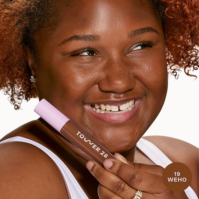Tower 28 Beauty Swipe Serum Concealer - Hydrating Buildable Medium-Coverage Concealer with Skincare Benefits for Sensitive Skin - Shade 19 SGV, Deep with Warm Undertones, 0.22 Fl Oz